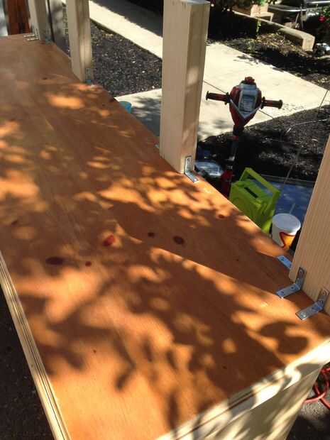 Paso 6: Construir la barra de. Usé 6 2 x 4 12" de largo para la construcción de la barra superior para arriba. Utiliza un montón de tornillos y soportes planos (encontrado en The home depot) y ángulo hasta que sentí que era lo suficientemente fuerte como para soportar el peso de la barra superior y dos adultos adulto de pie sobre él... PRUEBA