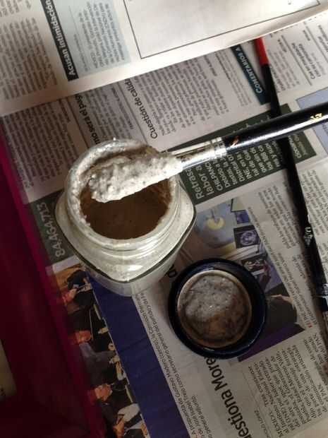 Mezclas los polvos de mármol (si escogiste 2) con el barniz sellador. Las cantidades son 1/1, si de barniz de la de "pases te pero es preferible" no estas muy seguro, ya si es poco al secarse el mármol se podría desprender. Recomiendo mezclarlos en un bote cierre y quede sellado porque si sobra puedes guardarlo y volverlo a usar. Por ejemplo esta mezcla estoy usando la hice hace más de un año y me sirvió muy bien :)