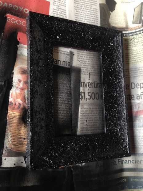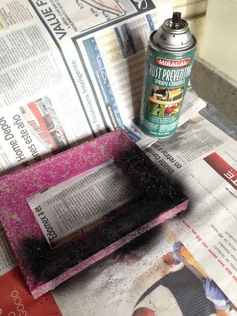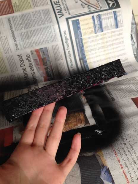 Ahora lo pintaré de negro, es el color quiero sea mi base. No tiene ser en aerosol puede ser acrílico, pero el spray es de sampling rápido y cuando queremos todo de un mismo color es más fácil de esta manera.