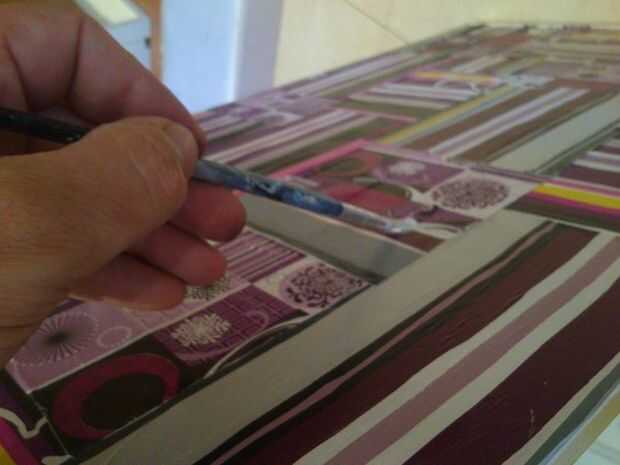 En los bordes, aplicar el pegamento con un lápiz y pegar el papel tratando de hacer sin arrugas.