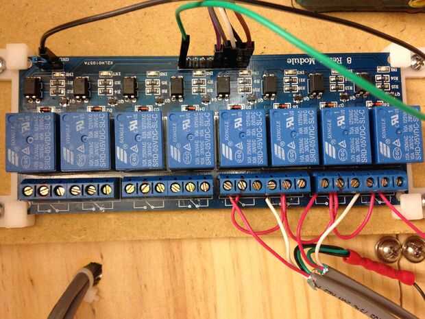 El cuadro ilustra la placa de relé completamente atado con alambre.