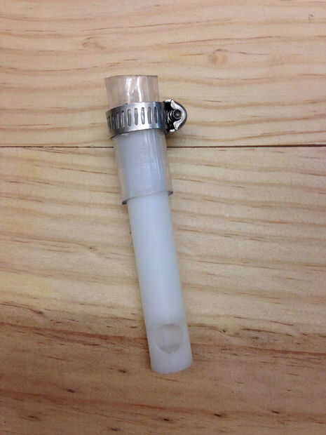 Conecte la salida de la válvula de pandillas con el tubo corto y asegúrelos con una abrazadera de manguera.