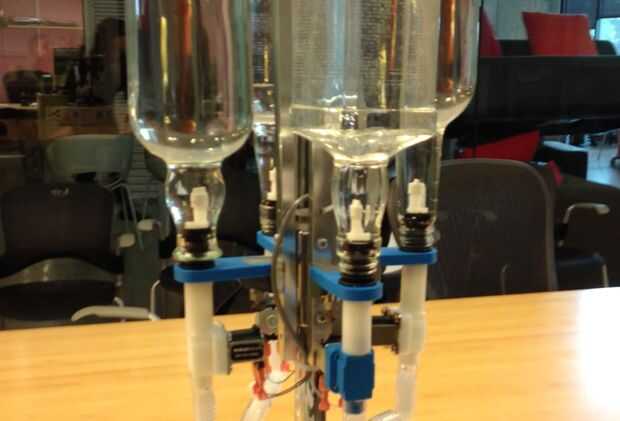 Se trata de un alimentador de gato automático basado en el taladro.  Varias libras de comida para gatos se almacenan en el depósito por encima de la barrena, y el alimentador está programado para dispensar automáticamente 1/4 de taza de alimento en l