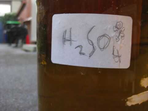 -Sulfúrico ácido es un electrolito maravilloso, pero terriblemente peligroso si se maneja irresponsablemente. Quemará la piel y mesas y caras, manejar siempre con el máximo cuidado y use siempre gafas y guantes de caucho natural (no látex).