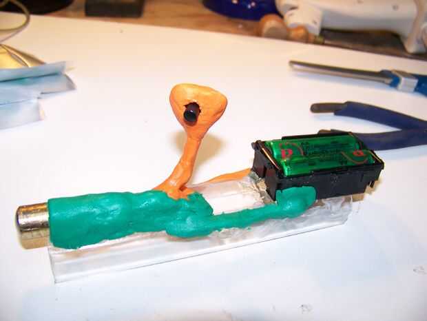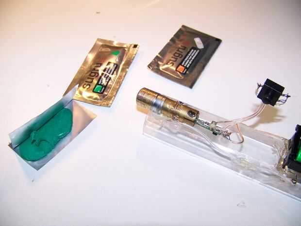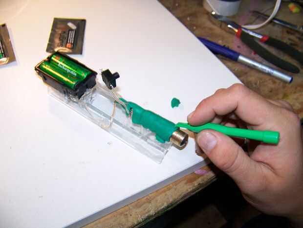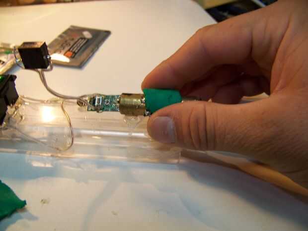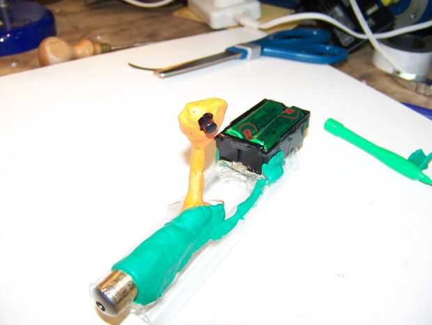 Una vez que ha endurecido, tapar toda la electrónica con sugru para protegerlos. Esto hará que se vea más bonito, así como disminuir las posibilidades de dañar cualquier cosa mientras usted está a tientas en la oscuridad. Elegí verde durante la mayor parte de él y naranja para el interruptor, ya será más visible en condiciones de poca luz.