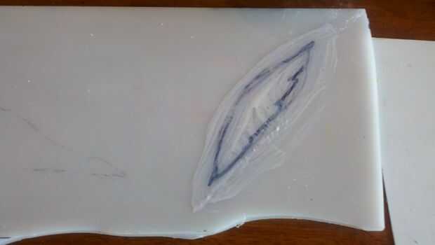Comienzo exponiendo mi forma básica de la pieza de acrílico usando el rotulador.