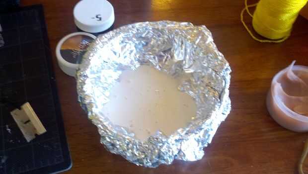 Para evitar contaminar su látex Vierta en un recipiente, línea mi cuenco con papel de aluminio.