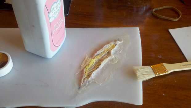 Coloque las fibras de la cadena en el dispositivo, deben atenerse al adhesivo. Pintar encima con látex que se adhieren las fibras más, dejar secar y aplicar látex más hasta que "parece justo" que es totalmente subjetivo.