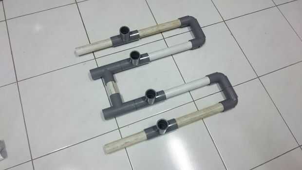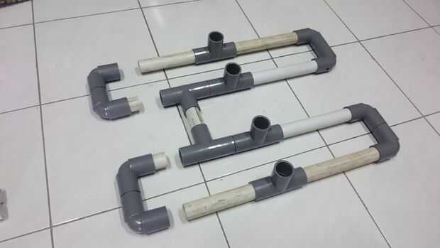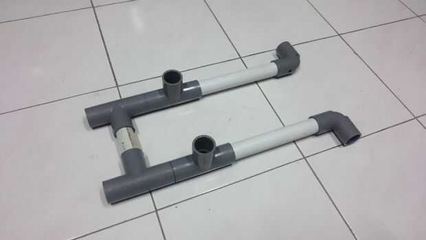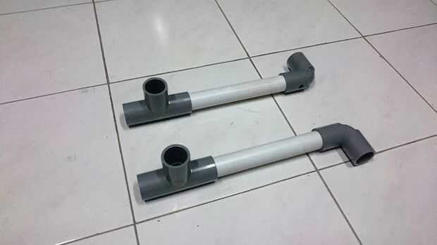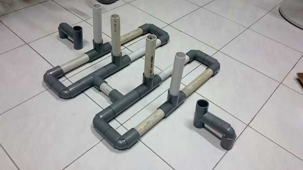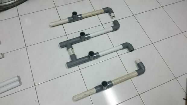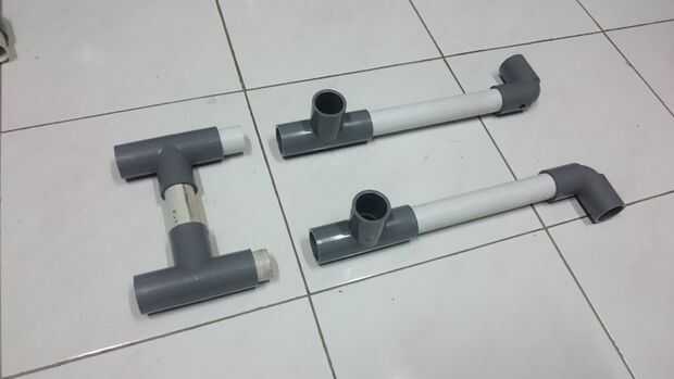 Ahora pongamos los tubos juntos. Echar un vistazo a las fotos en orden. Puse algunas notas acerca de la longitud del tubo. Para la conexión "L" "L", "L" "T" y "T" "T" utilizamos tubería de 2" en el medio.