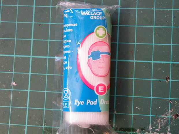 El nervio óptico está hecho de lana, el vendaje es un adecuado vendaje de ojo (es "obsoleto", donado a los niños por un amigo de socorrista), y todo esto se lleva a cabo junto con pegamento PVA.