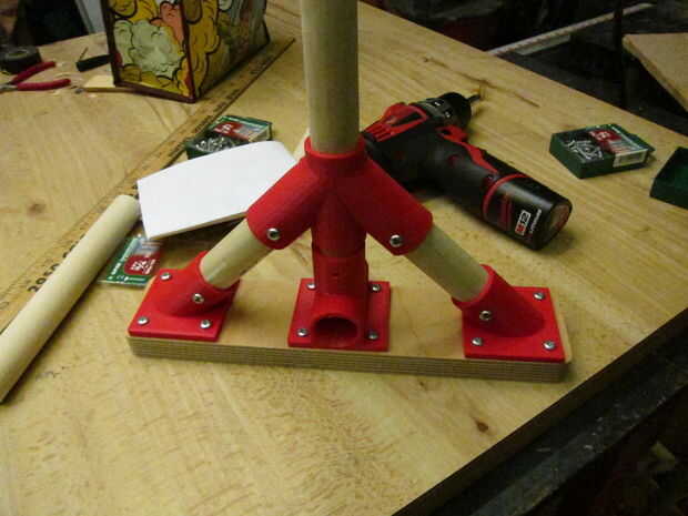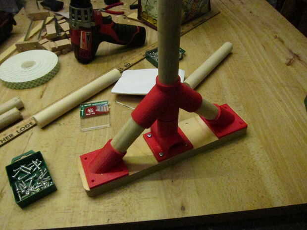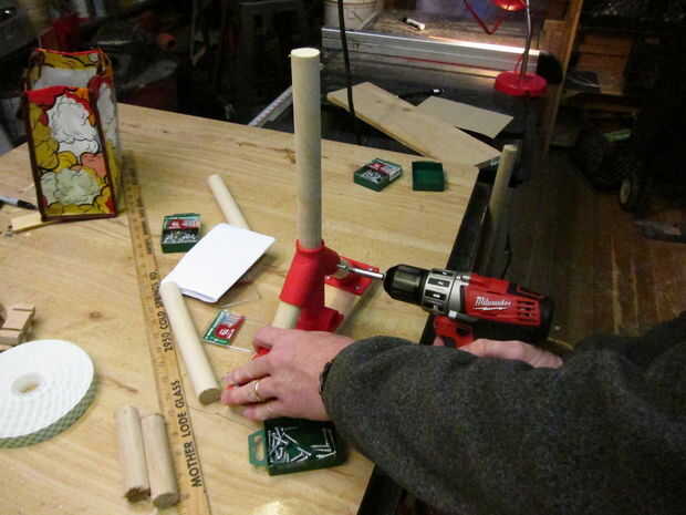 Llevar las llaves 1 a la tabla deslizando el tirante 3 abajo de la longitud más larga de la espiga. Asegúrese de que los tacos de 4" estén bien sentados, en el soporte 3 en un extremo y una llave de 1 en el otro extremo.