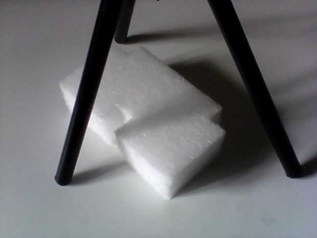 Si se trata de un trípode que tienes, corte 3 ranuras de las patas del trípode para anclarse firmemente en ese bloque.