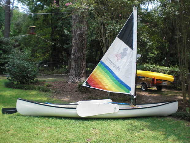 Después de remar el Kayak de mar nuevo brillante de mi hijo, mi canoa de río indio antiguo, reparado a menudo sentía remando una puerta empapada. En aras de perseguir peces a lo largo de las ostras y las islas de la costa del Golfo de Florida, decidí añadir una vela. Las reglas del proyecto fueron que me pasar una cantidad mínima de dinero y que yo uso lo que ya está en la casa tanto como sea posible (es verano y yo soy un maestro).