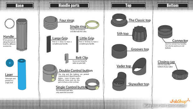 Pensar sobre qué diseño desea hacer e imprimir las piezas en consecuencia. Usted necesitará una impresora 3D que tiene al menos 15cm de altura z.