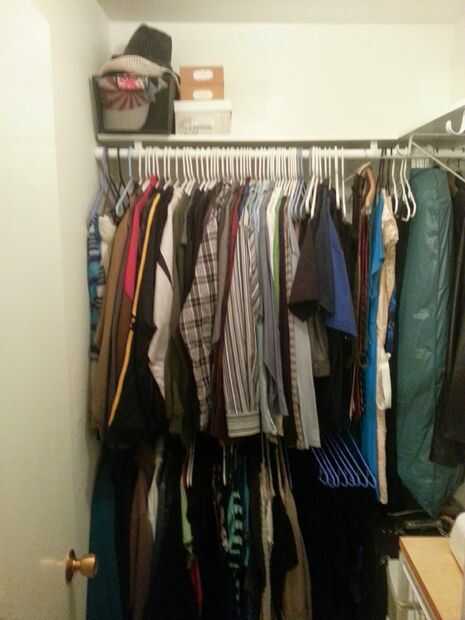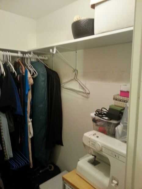 Una parte del proyecto es que todo lo que estaba en el armario trasero... ¡ Y MÁS! Gracias al espacio añadido hay ahora más capacidad de almacenamiento, tanto de piso y colgantes. Este también es el momento perfecto para organizar la ropa de colgar! Después de todo este trabajo necesitamos un descanso - tiempo para relajarse. Lo bueno de un proyecto como este es que es una buena excusa para deshacerse de un montón de cosas no deseados o innecesarios que están ocupando espacio. Y con un poco de una cuidadosa planificación y trabajo duro se respira nueva vida en un armario estrecho.