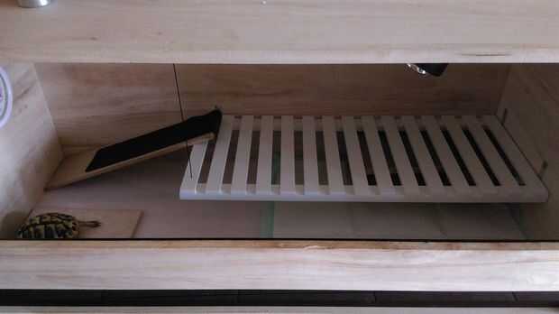 atenerse a la pendiente, esto añadirá la fricción mientras que tortuga subiendo. Tornillo de un soporte de forma de L hasta el techo para reptil