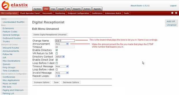 Rellene el nombre, en este caso nos estamos programación la rama que juega el DTMF, tan nombre algo como 'marcar el 9'.