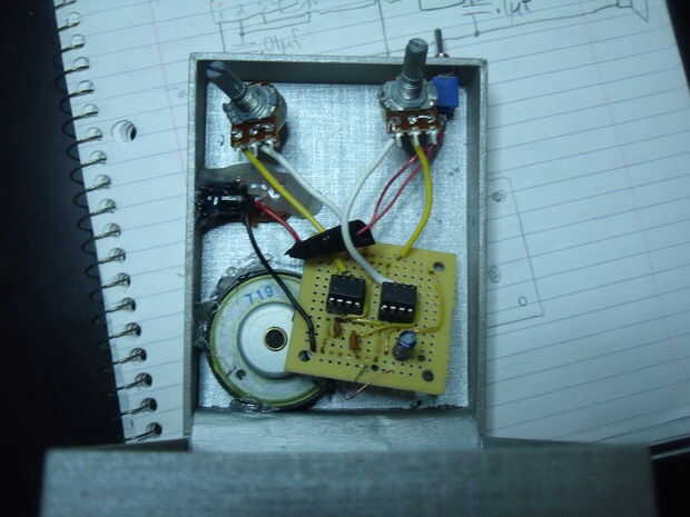 sintetizador Mini construí basado en el Atari Punk Console. En vez de dos de 555 o un 556 este utiliza un 555 y un 4013 d-tipo fracaso de tirón. Tiene dos momentáneo pitch Shift (arriba + abajo) tres ollas control de frecuencias diferentes, un interr