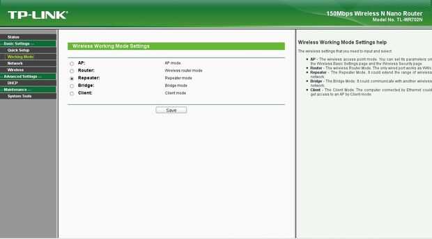 Seleccione el modo inalámbrico: repetidor o Bridge va a hacer. Desde repetidor es más simple (y asumir no desea nuevo WiFi AP en tu red), vamos a ir con eso.