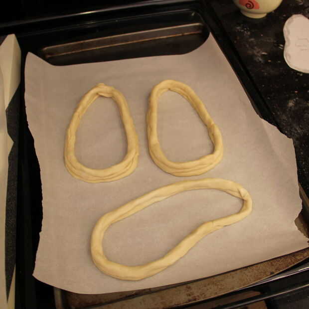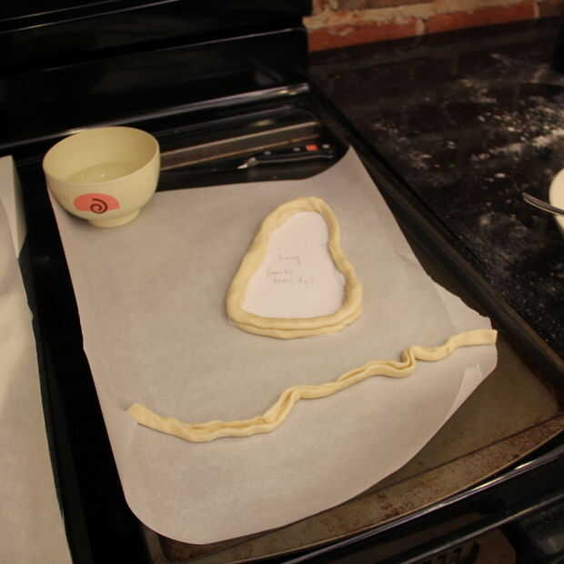 Imaginar es como si estás haciendo un cuenco de barro, sólo la masa laminada en todo el patrón de viento añadiendo al menos dos capas. Utilice un poco de agua para conseguir que permanezcan juntos.