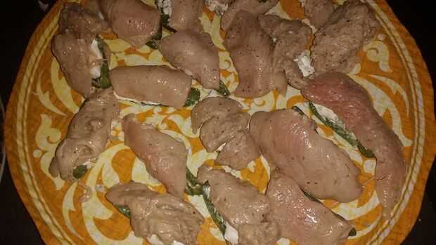 Paso 4: lugar de marinado, golpeado plana pollo chuleta sobre chiles jalapeños relleno de queso.