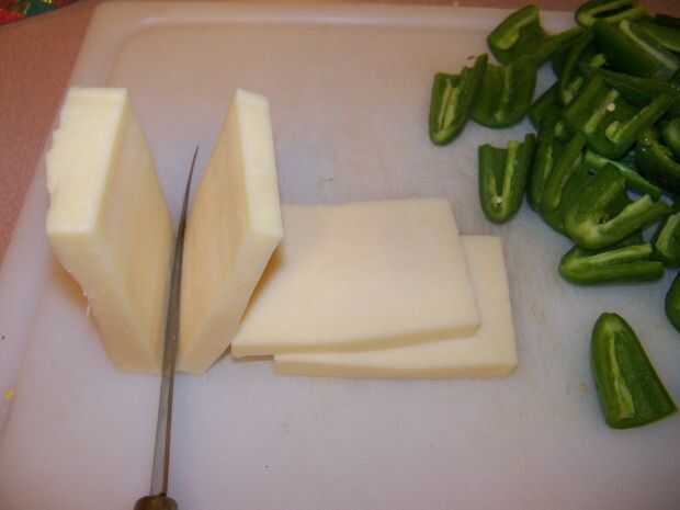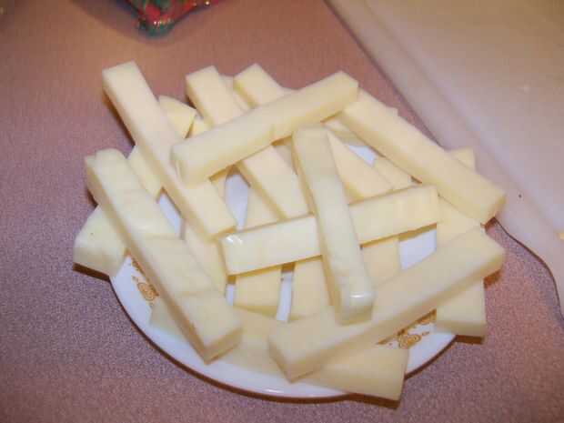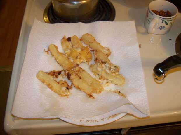 Primero cortar el queso en bastones cuadrados 1/2 pulgada (12mm) aproximadamente 3 pulgadas (75mm) de largo. Apilarlas sin apretar en una placa y ponerlos en el congelador durante al menos media hora. Mezclar la masa, que tipo de grosor. Calentar el aceite, yo uso medio-alto en mi quemador, pero la mejor manera para estar seguro es probar una pieza antes de todo esto. Ese fue mi error esta vez, he hecho esto antes y lo tenía que funcionar bien. Esta vez..., no vaya tan bien.