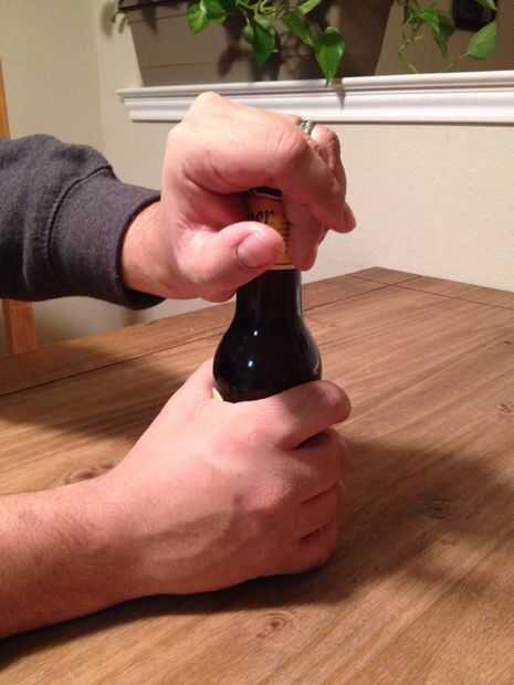 abrir una botella de Champagne con una espada/cuchillo de cocina, una botella de vino con una cinta y una botella de cerveza con una nota de papel!Instrucciones en el videoBotella de ChampagneTomar un cuchillo de cocina grande y sostenga la botella d