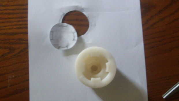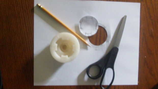 La forma más fácil que encontré para conseguir una plantilla exacta es un grafito del frotamiento. Tomar su papel, en mi caso solo impresión papel. Poner encima la tapa. Ligeramente apretar el lápiz y frote para mostrar donde están los contactos. Una vez que tenga un roce decente de él te recomiendo trazar las líneas más pesadas hacer más fácil cortar más tarde.