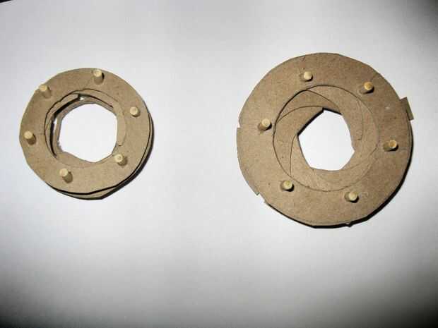 Algunas fotos más. La abertura más pequeña (con el anillo Ajustador arremolinados) fue mi primer prototipo. No funcionó muy bien, y los brazos cogidos unos a los otros demasiado.