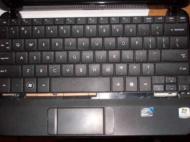 * Mirar el teclado. En el borde de ambos lentamente retire la almohadilla. En su parte inferior derecha debe ser el cable. Lentamente retire el cable y debería poder quitar el teclado.