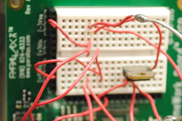 Ahora usted debe con alambre el tablero con todos los componentes. Conecte uno de los cables de extensión desde el extremo positivo (+) de la batería a una columna bajo VDD en el protoboard y el otro cable de extensión para el negativo (-) bajo VSS