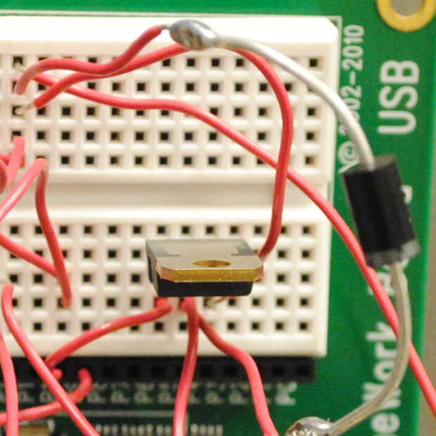 Ahora, usted necesita tomar el transistor TIP 120 y enchúfelo en la sección VDD de la protoboard.