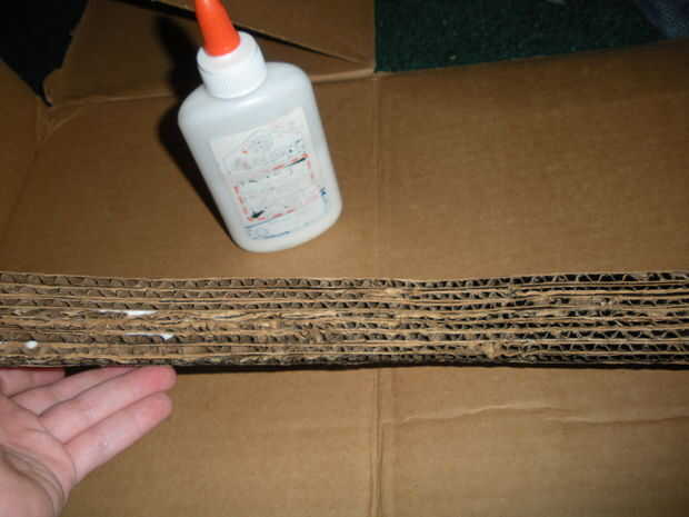 poner el glu en la parte superior de una sola pieza, poner otro en y colocar una capa de glu después de eso. repetir hasta listo. Coloque la regla contra el lado para comprobar la altura.