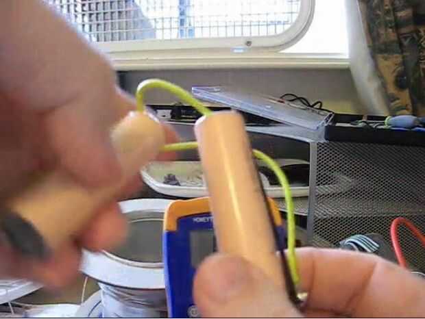 Sólo no se puede soldar una conexión a la batería, la soldadura no se pega. DAB en algún flujo en primer lugar, luego de la soldadura de un soldador caliente y debe terminar con una fuerte soldadura blob de la batería en que puede soldar. No estar mucho tiempo con el soldador, no es bueno tener un soldador caliente contra una batería por más de un par de segundos a la vez.