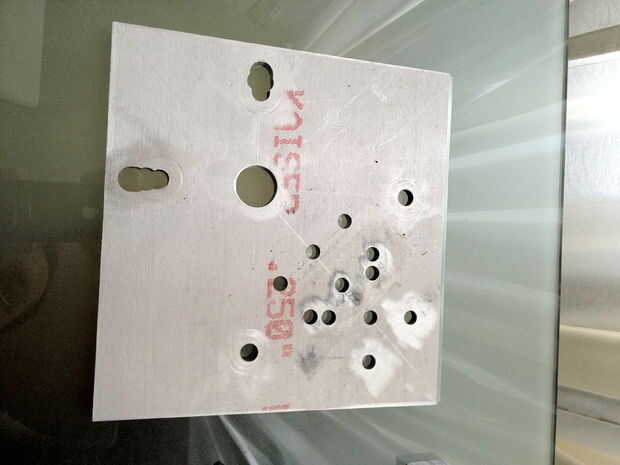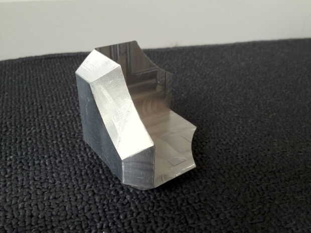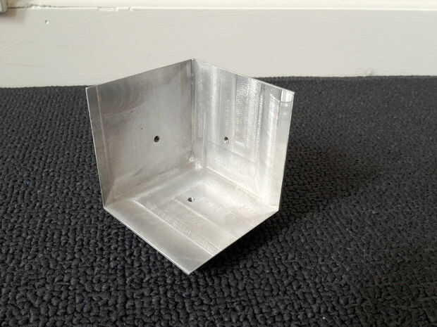 6) ahueque hacia fuera el área restante mediante una fresa largo (~ 3" filo) en cada una de las 3 caras feas (ver imagen). Terminarás con un montón grande de aluminio en el suelo.