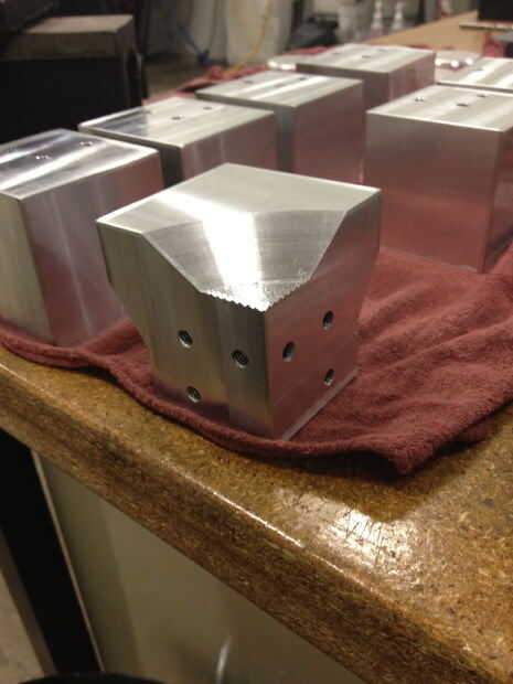 1) Perfore y pulse 3 orificios de montaje en cada bloque, en los 3 feas (no ante) caras del cubo. Estos se reducirán a más tarde, por lo que no importa. Hice estos cerca de 2" de profundidad.