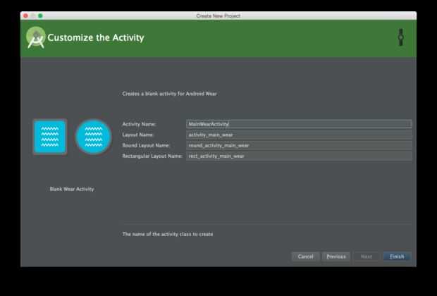 Si ha agregado una actividad usable, entonces seguir adelante y aquí el nombre. Para realizar las actividades fácilmente distinguibles, a estar cambiando el nombre de actividad usable a MainWearActivity.