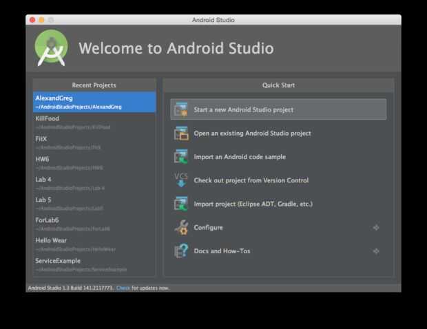 Para este tutorial, a comenzar de nuevas y cree un nuevo proyecto en estudio de Android. Poner en marcha el editor y cuando aparece la pantalla de bienvenida, haga clic en:
