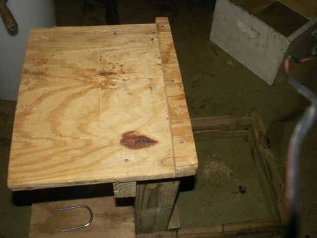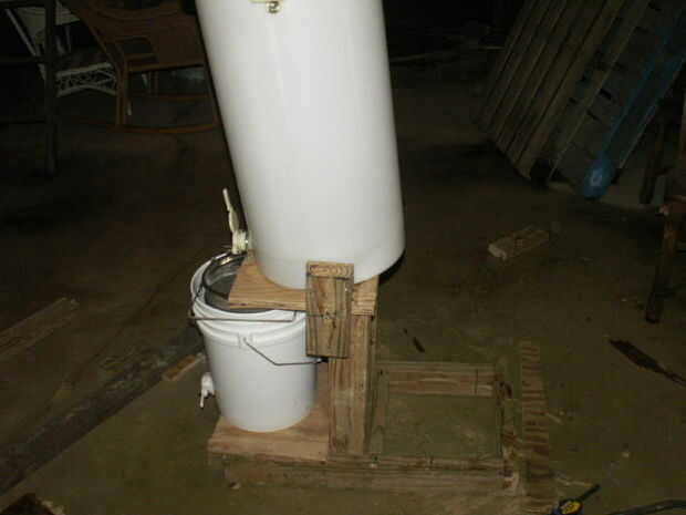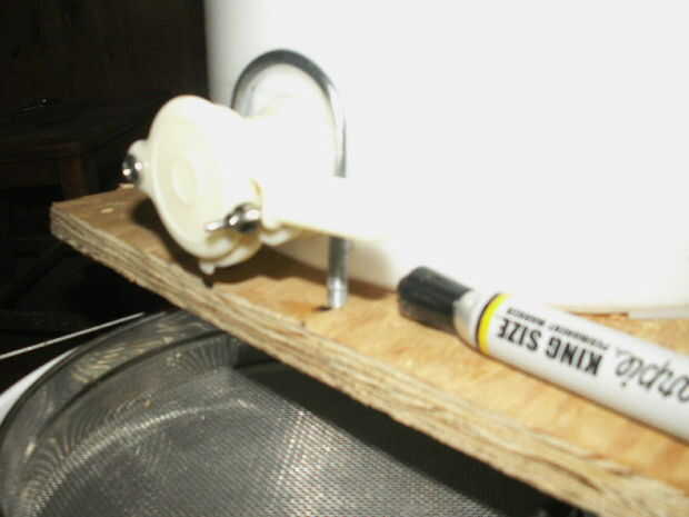 He añadido dos cosas a la parte superior de este algunas placas en los lados para sostener la cubeta extraible en su lugar. Y tiras un par de madera contrachapada en la parte posterior, dos mantenga el cubo en una inclinación para que la miel puede verter en la cubeta del fondo más rápido.