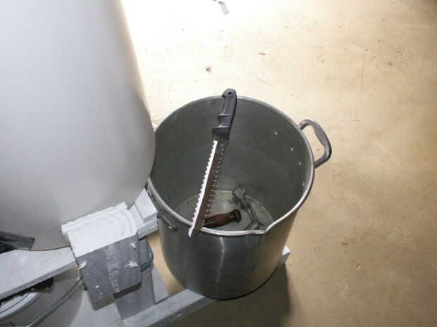 Agregar sus herramientas de abeja y un cubo de metal para la celebración de la cera con y y un cuchillo de pan y el resto de tus cosas de abejas.