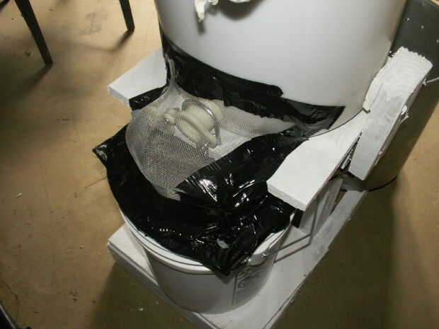 Y la parte inferior de la cuerda del amortiguador auxiliar del cubo en su lugar y ahora algunos malla y cinta alrededor de la cubeta y la nuestra salida. Asegúrese de que no las abejas pueden volar y se atascan en la miel.