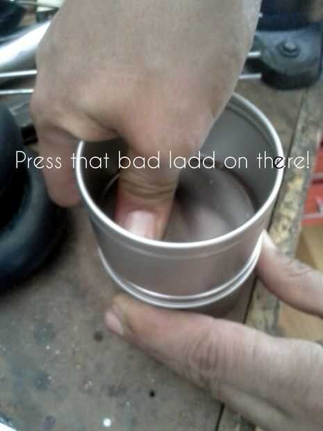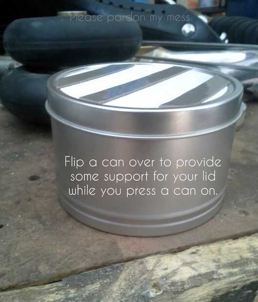 Los párpados son finos, pero si voltea una lata vacía, la parte inferior se ajusta perfectamente dentro de la tapa, proporcionando suficiente presión para pegar las piezas juntas. Pegar la parte inferior de un vacío de la lata de la tapa y listo! Materia fácil. Repita para todas las latas que tienes. No hagas las pilas tan altas que no cabe en su estante y hacer un punto de llenado de las latas de abajo con las cosas más pesadas, para mantener estable las pilas.
