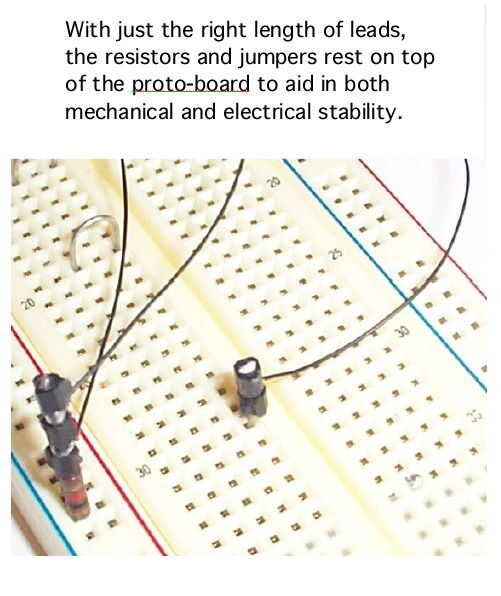 El jumper o componente debe descansar en la parte superior el proto-board.
