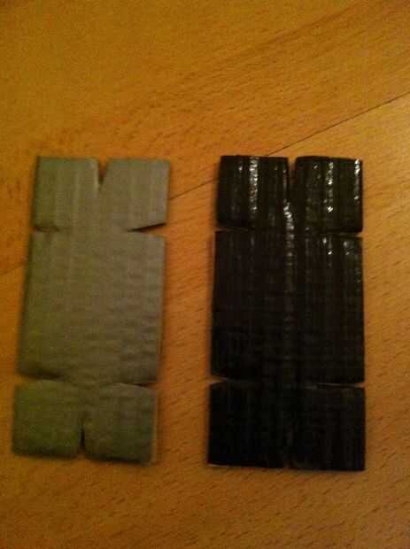 Teníamos cinta solo gris y negro. Así nos habían pegado 7 tarjetas en estas dos cintas de color del conducto. Recibí ayuda de mi niñera no esta pegado.