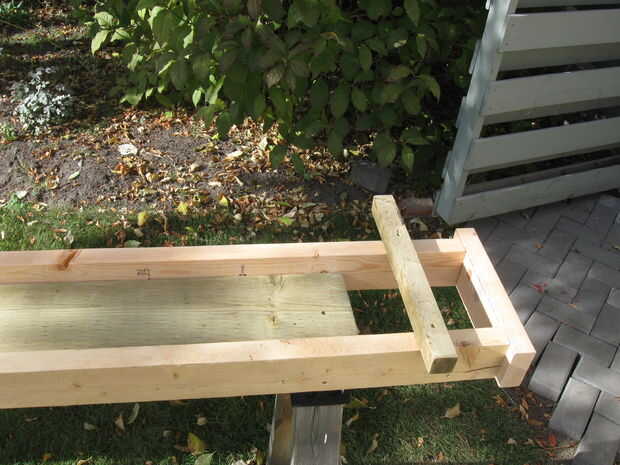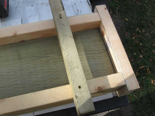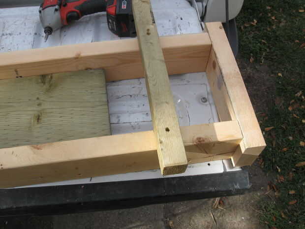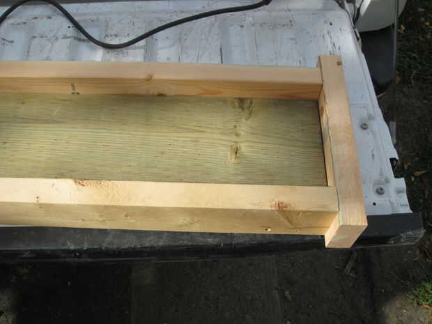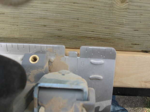 La base verde es un 2 X 8 y los lados son un par de piezas de 2 X 4. El grueso de la la sección de corte es otro desecho 2 X 4.