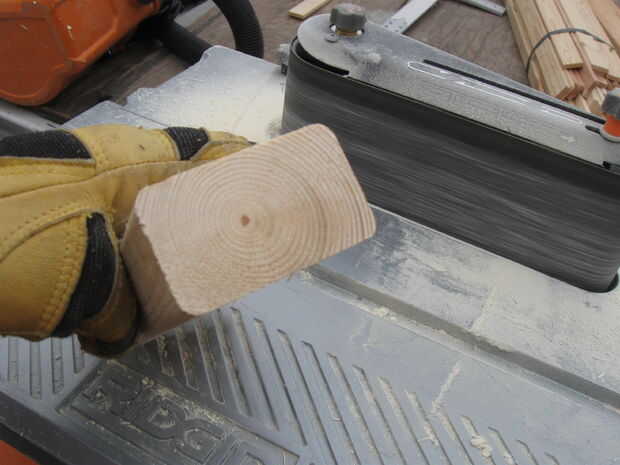 Lijar los extremos primero luego las esquinas contorneadas de los recortes del molino, luego las caras de los bloques. Asegúrese de guardar la forma de los bloques ásperos y sólo quitar tanto material como sea necesario para dar un acabado liso.
