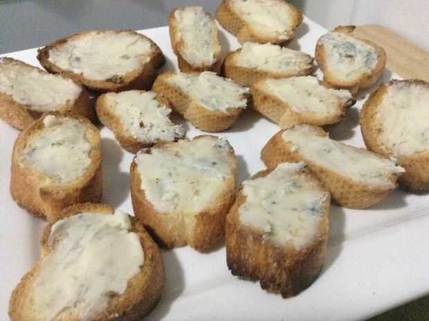esto es un bocado perfecto porque es rápido, fácil y delicioso. Ya sea liso o con galletas, no te equivocarás. Usted puede Agregar especias, carnes y quesos diferentes. Condimente a su gusto!IngredientesBaguetteCrema de quesoTomates secados al solAjo