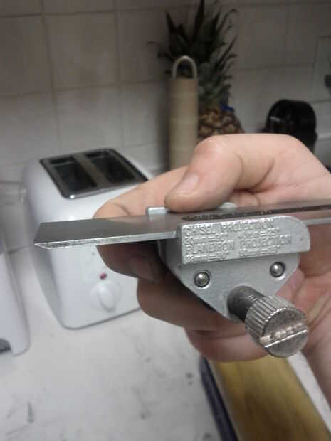 Para lapeado o afilado de futuro ayuda a escribir la distancia necesaria para fijar la herramienta en ángulo recto directamente en la cuchilla o herramienta sí mismo.