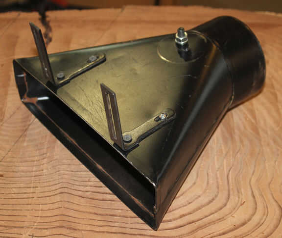 Me ha pasado tener un 4" canal inclinado del polvo poner alrededor, pero creo que probablemente encontrará algo similar en el área de metal de hoja en casa Depot.