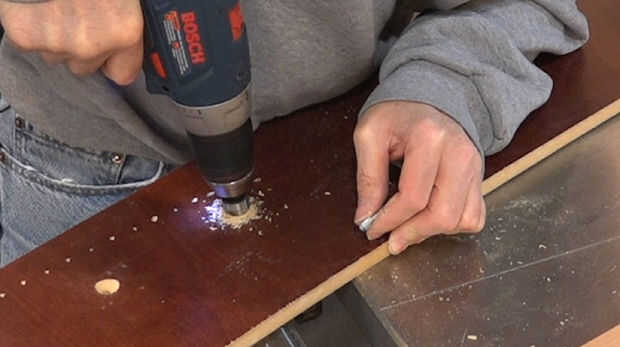 Utilicé una sierra de calar para hacer un poco de alivio al corte donde sería el canal inclinado del polvo. Entonces utilicé unas escuadras para montar el canal inclinado del polvo para la plantilla.